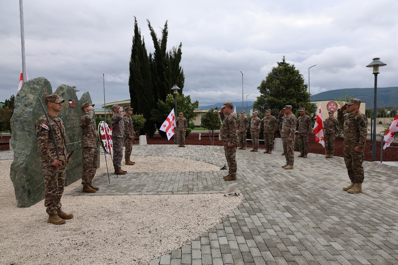 The leadership of the National Defence Academy laid a wreath at the memorial dedicated to the heroes who died while defending the territorial integrity of Georgia. The event was attended by the Junkers of the Training Battalion of the Academy, students of the Candidate Course, and the Academy's personnel.