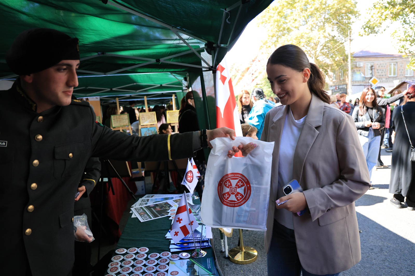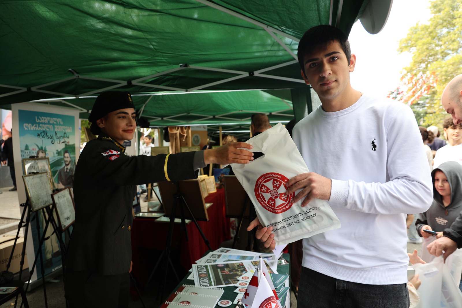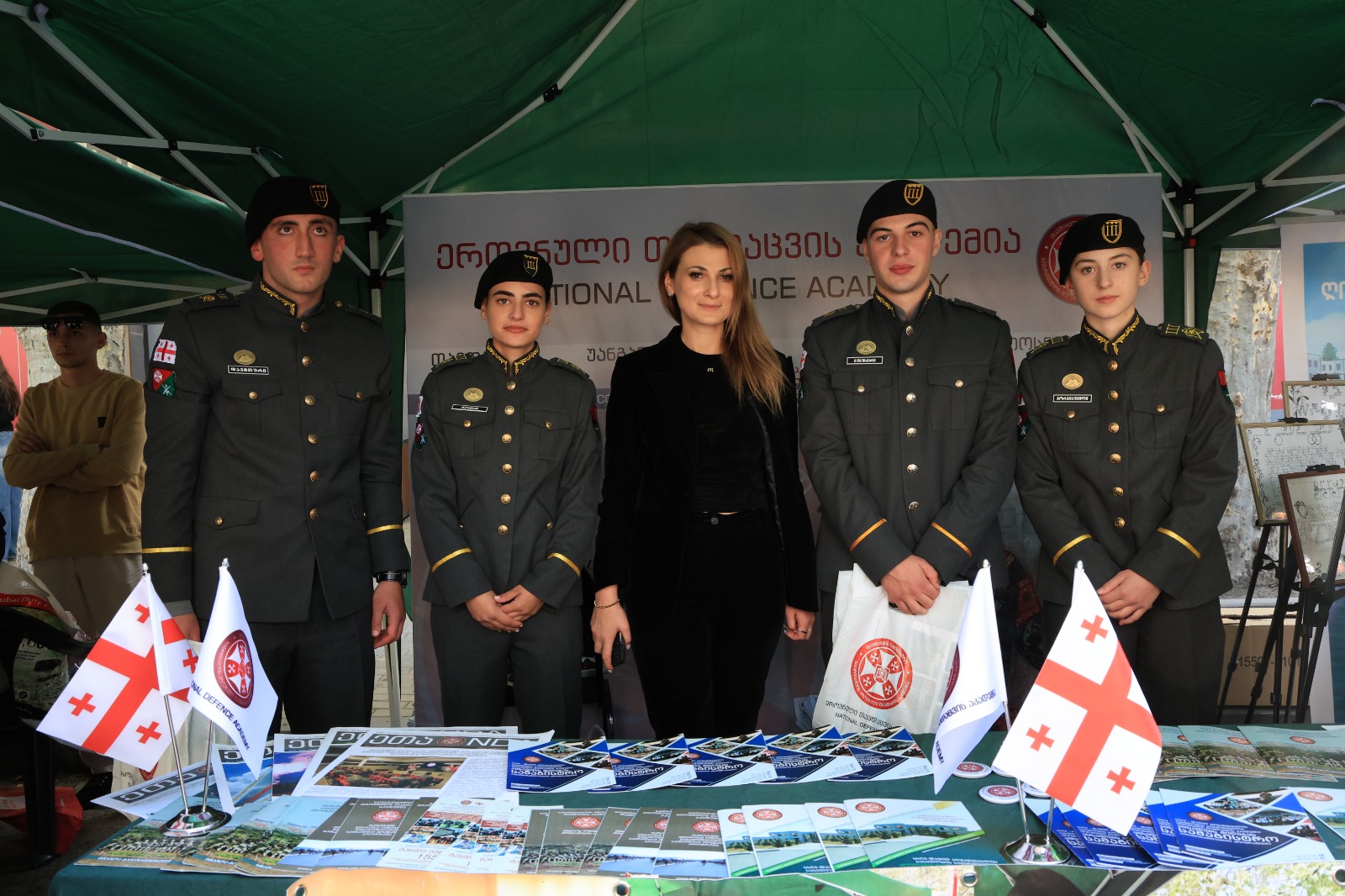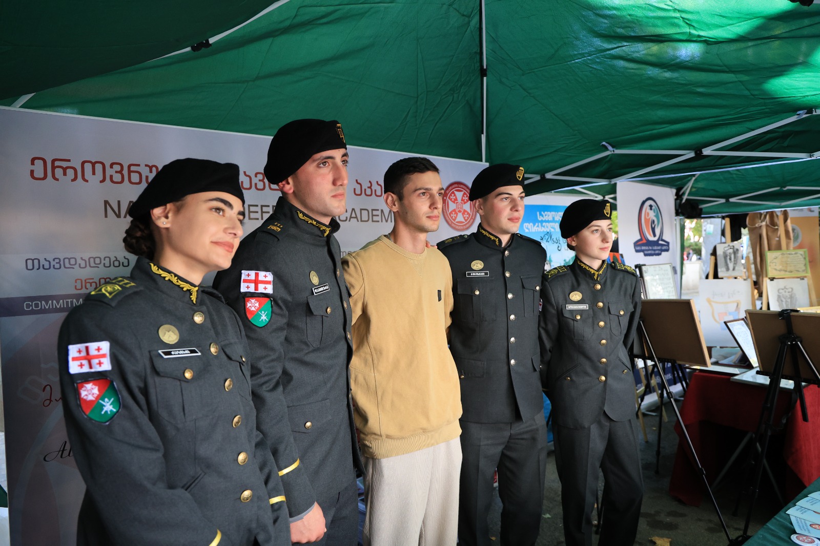საგამოფენო სივრცეში ეროვნული თავდაცვის აკადემია, სხვა საგანმანათლებლო დაწესებულებებთან ერთად, სპეციალური სტენდით იყო წარმოდგენილი, სადაც განთავსებული იყო აკადემიის სარეკლამო-საინფორმაციო ბროშურები და სხვადასხვა ბრენდირებული სასაჩუქრე საშუალებები. ღონისძიების მიმდინარეობისას აკადემიის იუნკერები დაინტერესებულ პირებს ამომწურავ ინფორმაციას აწვდიდნენ აკადემიური და სამხედრო განათლების მიღების პერსპექტივების, არსებული საბაკალავრო, სამაგისტრო და ოფიცერთა მომზადების საკანდიდატო კურსზე, აგრეთვე გაცვლითი პროგრამების, სტიპენდიის მიღების პირობებისა და აკადემიის მატერიალურ-ტექნიკური საშუალებების შესახებ.