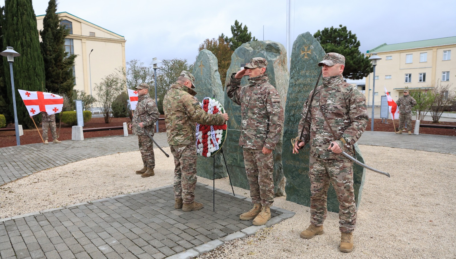 დღეს დავით აღმაშენებლის სახელობის საქართველოს ეროვნული თავდაცვის აკადემიის სამეთაურო რგოლმა, პირადმა შემადგენლობამ, იუნკერებმა და მსმენელებმა პატივი მიაგეს საქართველოს თავისუფლებისა და დამოუკიდებლობისათვის დაღუპული გმირების ხსოვნას და გვირგვინით შეამკეს აკადემიაში მდებარე გმირთა მემორიალი.